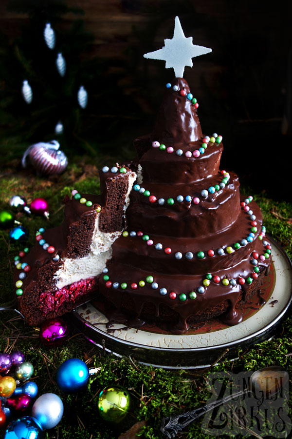 Anmerkung: Wer dennoch versuchen will, den Christbaumkuchen in Stücke zu schneiden, der sollte die Spitze in jedem Fall vorher abnehmen…. oder evtl auch noch die 2. Etage von oben. Aber spart euch den Ärger an Heiligabend und teilt lieber Löffel aus!!! 😉