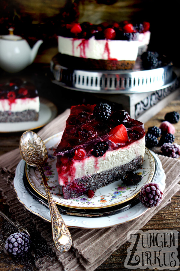 ![]() Gemischte Beerentorte mit Mohnboden und weißer Schokomousse |
