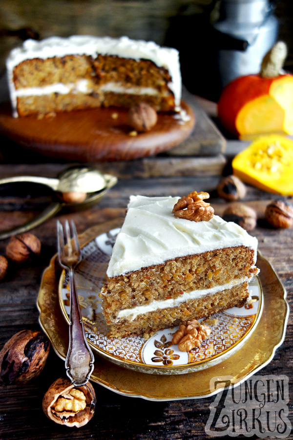 Oder lieber eine Tarte mit Nüssen? Diese Kürbistarte stammt aus der Anfagszeit des Zungenzirkus, was man am Foto deutlich erkennen kann! 😏 Lasst euch von dem Bild nicht abschrecken, die Tarte schmeckt unglaublich lecker und ist ein beliebter Klasser bei uns!![]() Leckerer Kürbiskuchen mit einem Frosting aus Frischkäse ![]() Kürbiskuchen, super saftig mit Frischkäsefrosting **hierbei handelt es sich um einen sogenannten Affiliate Link: