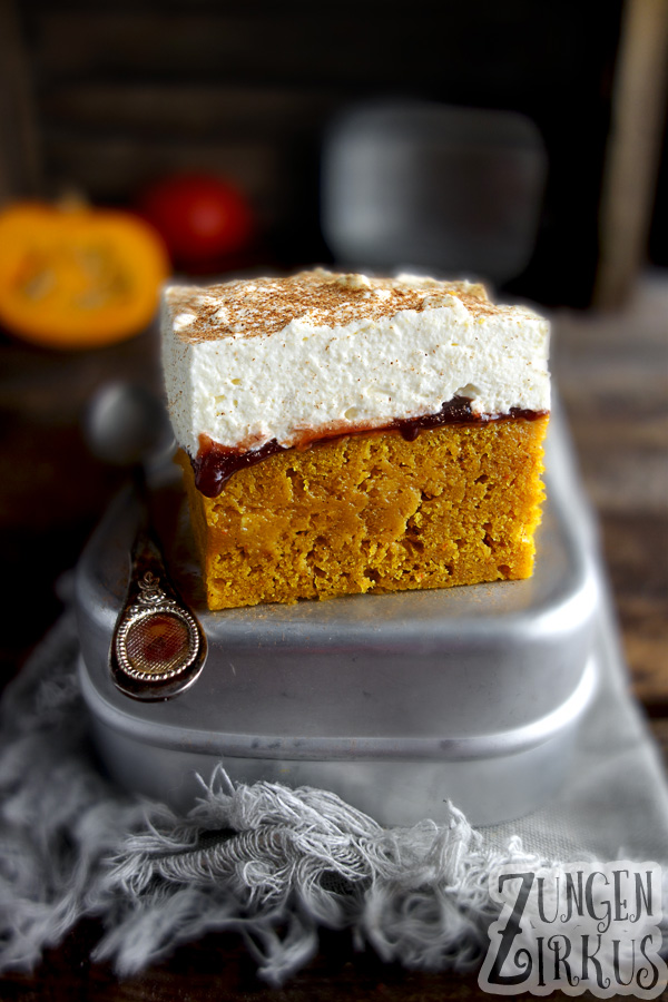 ![]() Saftigster Kürbis-Kuchen mit Pflaumenmus und Schlagsahne |