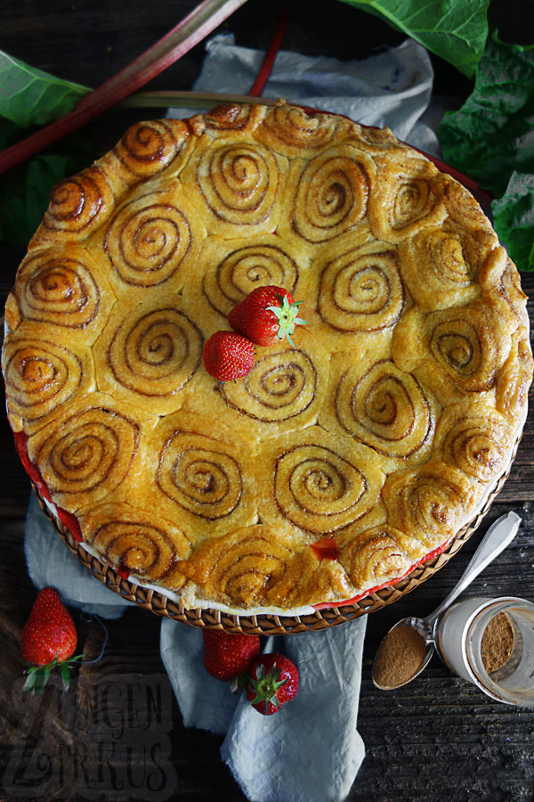 Zimtschnecken-Pie mit Rhabarber und Erdbeeren